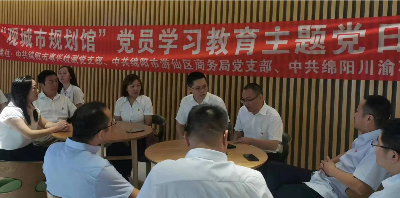 參觀結(jié)束后,事興檢測(cè)黨支部、游仙商務(wù)局黨支部和川渝石化公司黨支部,針對(duì)結(jié)對(duì)共建、合作方向等開展了交流座談。