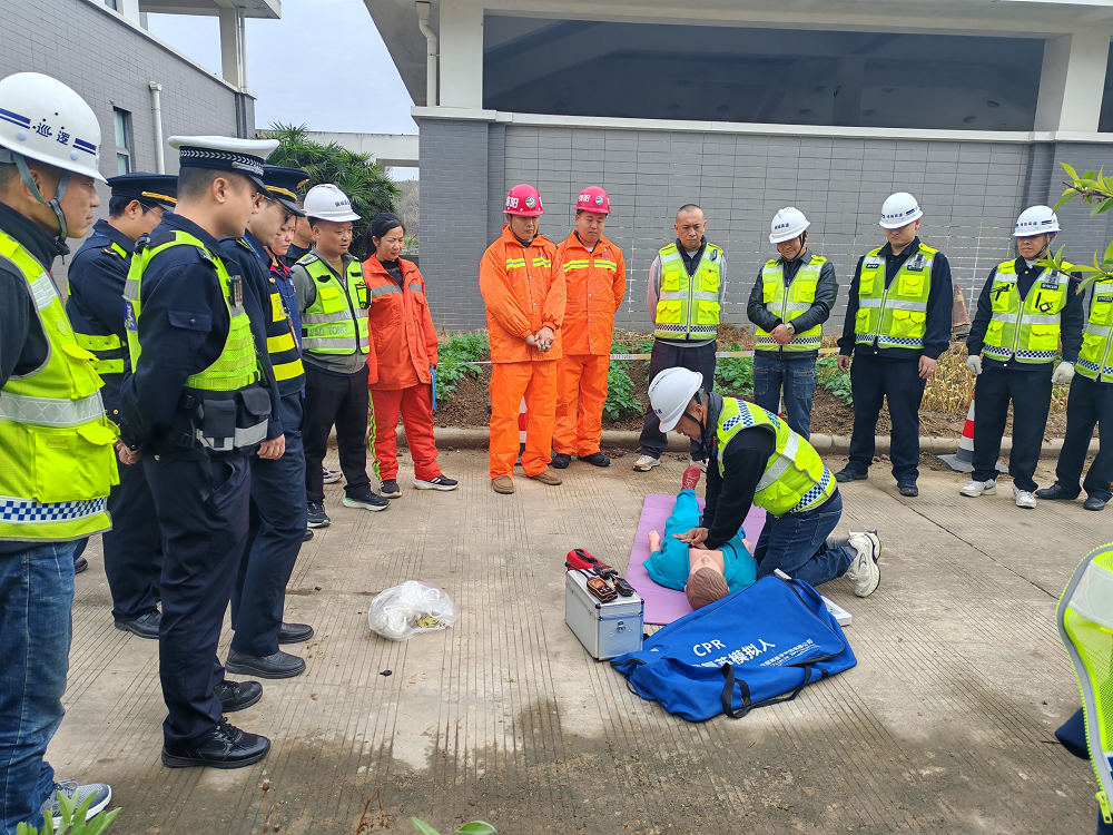 此次演練場景模擬S1成萬高速綿陽繞城段南服務(wù)區(qū)進行地下污水井清淤作業(yè)過程中,因有害氣體超標(biāo)作業(yè)人員出現(xiàn)頭暈、昏迷險情?,F(xiàn)場發(fā)現(xiàn)險情后,值班人員第一時間上報,演練總指揮迅速啟動有限空間應(yīng)急預(yù)案,立即下達(dá)警戒、檢測、通風(fēng)、救援、醫(yī)療救護等指令。各應(yīng)急小組快速響應(yīng)、分工協(xié)作:警戒保衛(wèi)組迅速劃定危險區(qū)域,設(shè)置警示標(biāo)識,疏散無關(guān)人員與車輛;環(huán)境監(jiān)測組使用氣體檢測儀對有限空間內(nèi)氧氣、有毒有害氣體濃度進行實時監(jiān)測;搶險救援組穿戴呼吸器、安全繩、應(yīng)急箱等專業(yè)裝備,在持續(xù)強制通風(fēng)后規(guī)范實施救援,快速將“被困人員”轉(zhuǎn)移至安全開闊地帶;醫(yī)療救護組立即開展心肺復(fù)蘇、人工呼吸等現(xiàn)場急救,并同步對接120急救中心,做好轉(zhuǎn)運準(zhǔn)備。整個演練過程緊張有序、環(huán)節(jié)緊湊,各小組配合默契、處置規(guī)范,嚴(yán)格按照應(yīng)急預(yù)案完成全部救援流程,達(dá)到了預(yù)期演練效果。